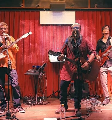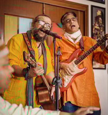 Their reunion sparked a creative combustion. The hard-edged rock they loved began to fuse with these ancient voices. Ida's electric guitar found a new voice in the yearning cries of the Sufi poets, while Pingla’s melodies came out of thin air, echoing the rhythmic pulse of devotional chants. Their jam sessions on roof top music room began. The raw energy remained, but now it carried a weight, a spiritual undercurrent that was both powerful and strangely soothing. And thus, came to life the band “KAASHI”.